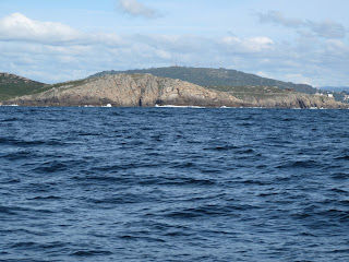 Skylark is tucked away for the night at the marina at Portosin, after a wild ride from Camarinas. Winds were variable at first, then picked up to around 20 to 25 knots in the after noon. When we changed our initial westerly course to south, some good sailing winds were encountered. Boat speeds of over 9 knots were achieved. Skylark crashed through the swells causing some crew anxiety at the thought of having to wash encrusted salt of the deck. Cape Finisterre appeared in the mist and rain. It was a celebratory moment but we mostly agreed its reputation was perhaps not as well deserved as the Bay of Biscay's, both of which are now behind us. Pictures will follow in the next blog post.